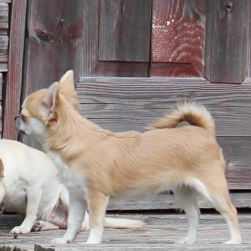 Дата рождения: 25.12.2013. Длинношёрстный чихуахуа, окрас голубо-палевый с белыми отметинами. Сука.