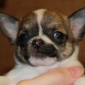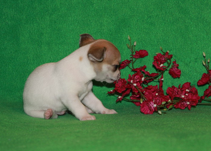 Чихуахуа. Гладкошорстный, бело-шоколадный