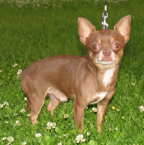 Гладкошерстный чихуахуа, окрас шоколадный, кобель.